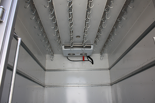 - Ganchos fijos o ganchos movibles tipo trailer en rieles de aluminio